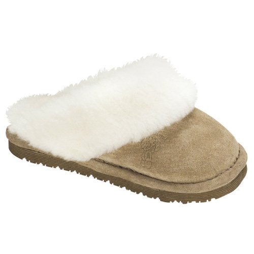 Old Friend Footwear. Girl's Sheepskin Scuff Slippers. Step in, slip off. Chestnut. 461140. (Small) Girls Fleece Lined Scuff Slippers. Step-in styling for fun and easy wear. Extra plush for super comfort. Triple foam reinforced heel with TPR bottom. Available in sizes X-Small - X-Large and Junior. Read more